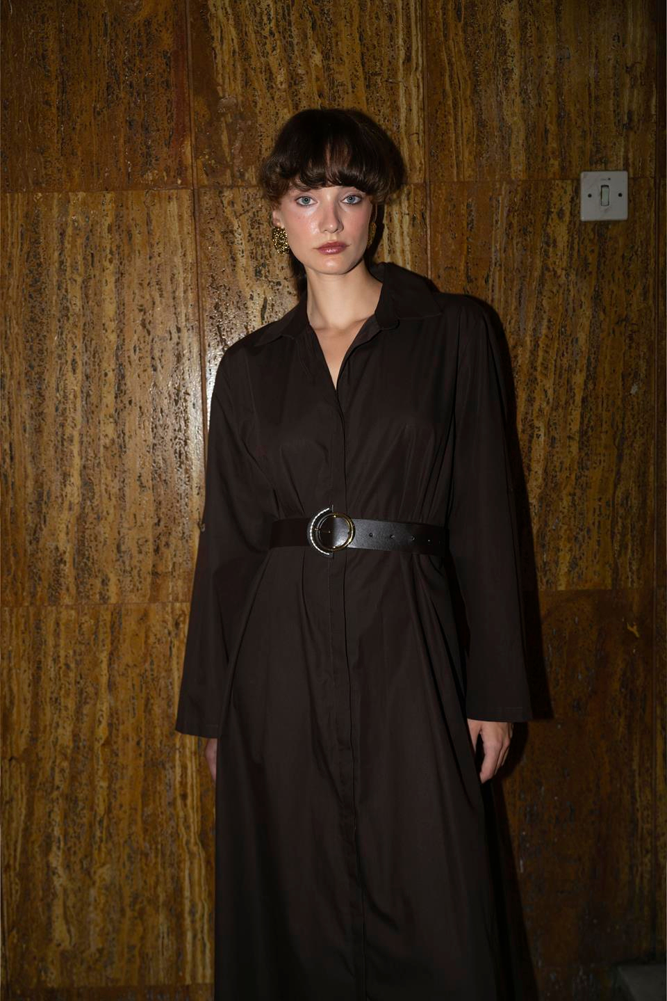 3350 KEMERLİ ELBİSE (3270) KAHVE