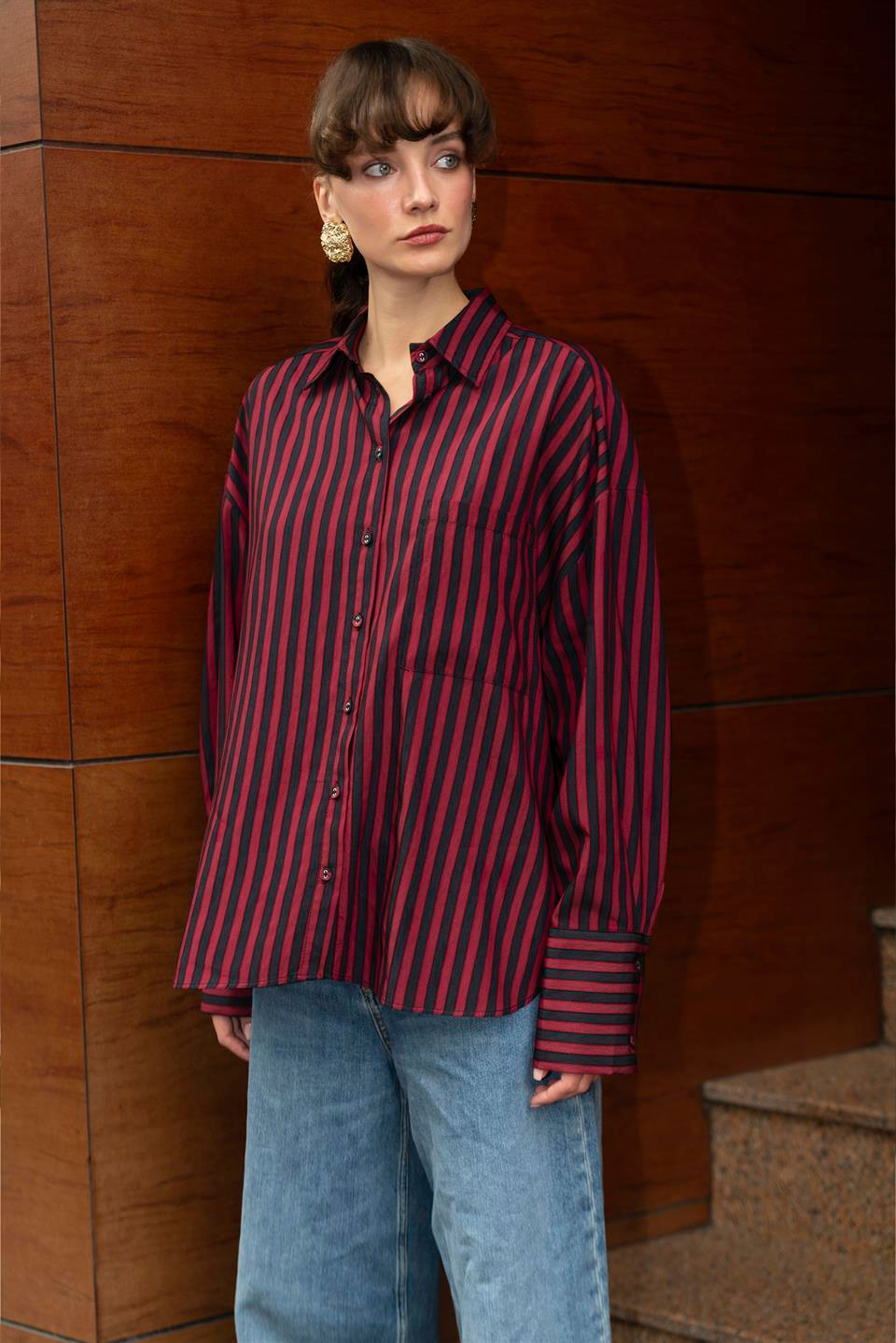 4969 ÇİZGİLİ GÖMLEK KIRMIZI-SİYAH