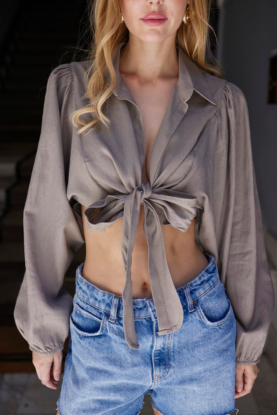 4979 YARASA BAĞCIKLI BLUZ VİZON