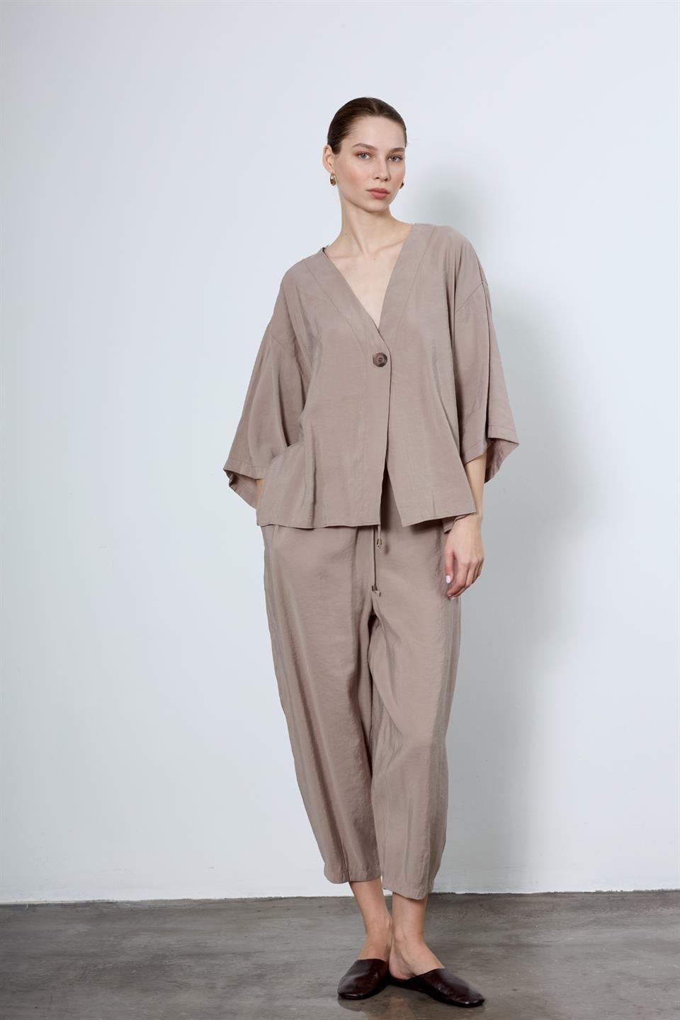 51106 BELİ LASTİKLİ PANTOLON VİZON (51106)