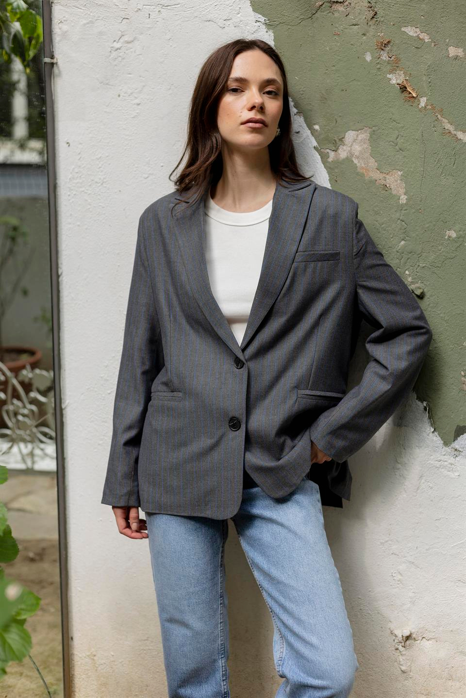 9558 ÇİZGİLİ POLİVİSKON CEKET ANTRASİT-MAVİ